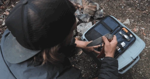 Cook Outside like a pro, with our 6″ Folding Chef’s Knife, designed with celebrity Adventure Chef, Adam Glick. We carefully looked at the edge geometry to create the best hand clearance and contact with the board. The wide 6” blade is balanced at the bolster for perfect control while for chopping or slicing, and the edge is ground to a razor sharp 15-degree. An open frame design allows water to flow through the handle slot for thorough and easy cleaning. We have also included a locking mechanism in the handle liner to keep the blade safely in place when in use. The blade is made from German 1.4116 steel so that you can easily re-sharpen your knife and use it for a lifetime.