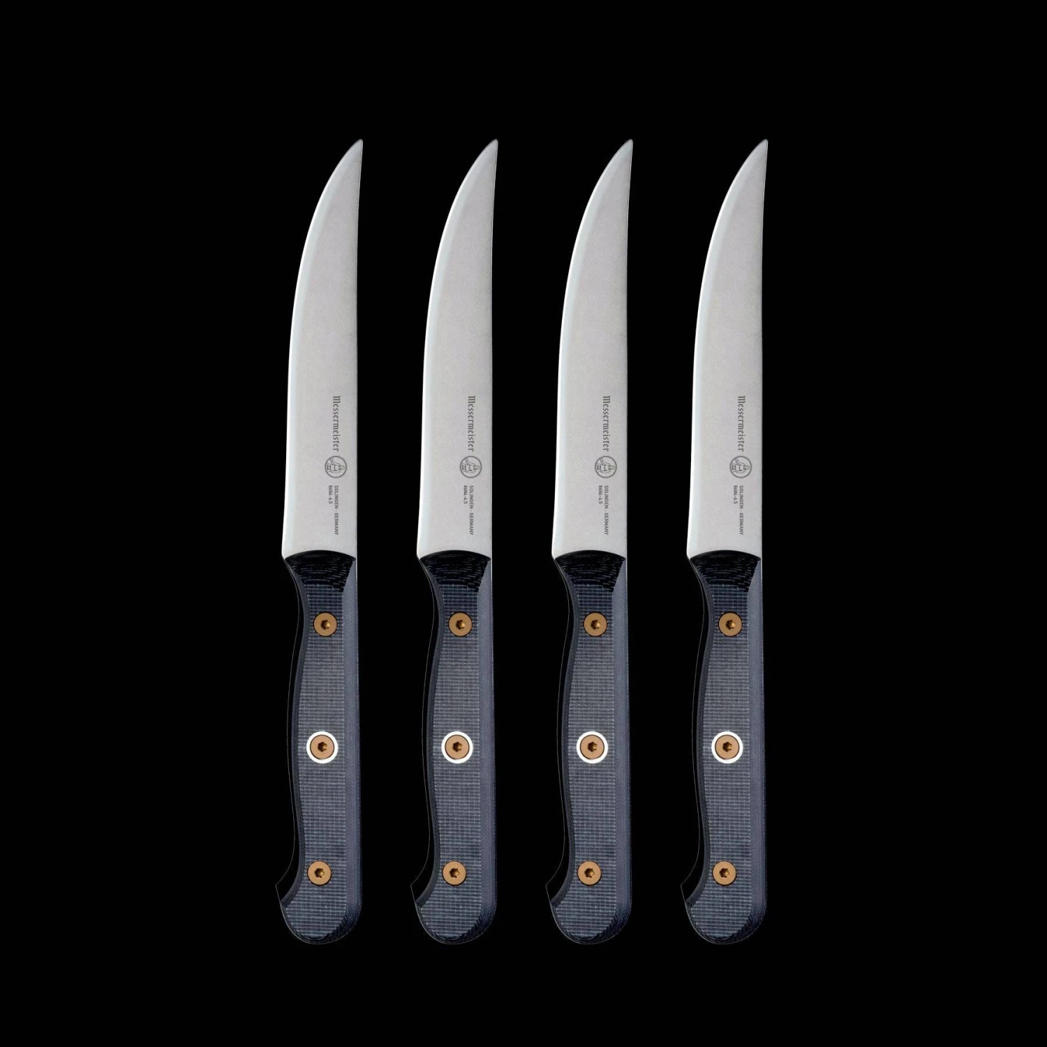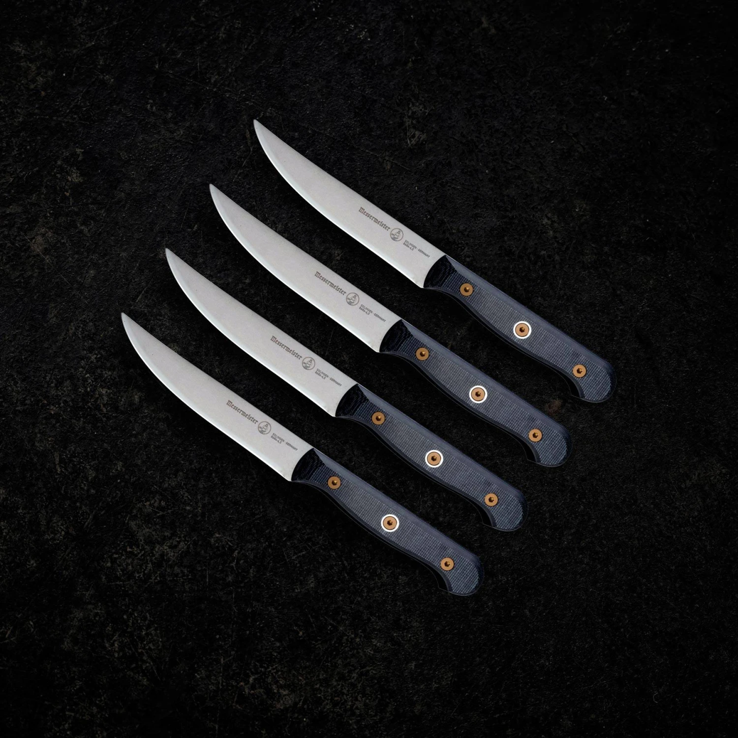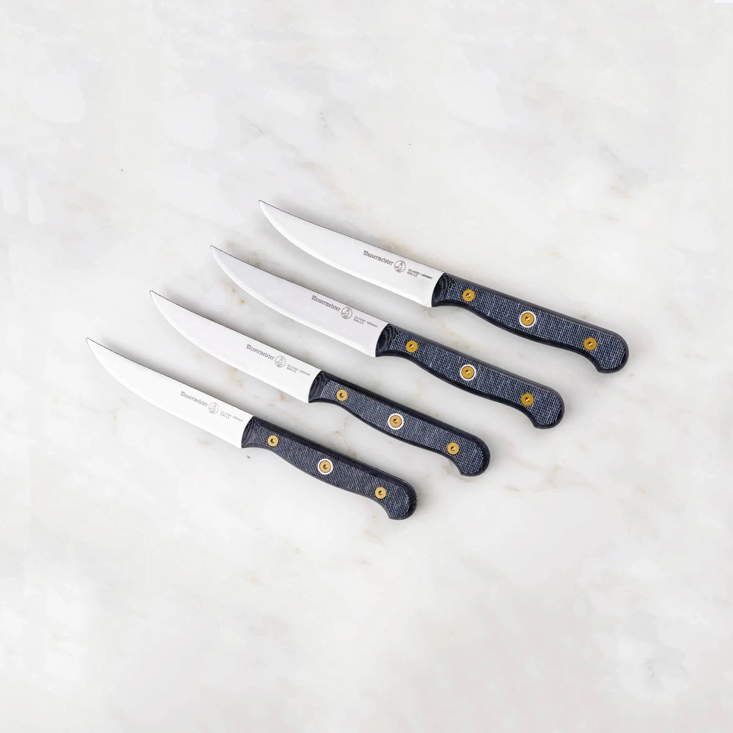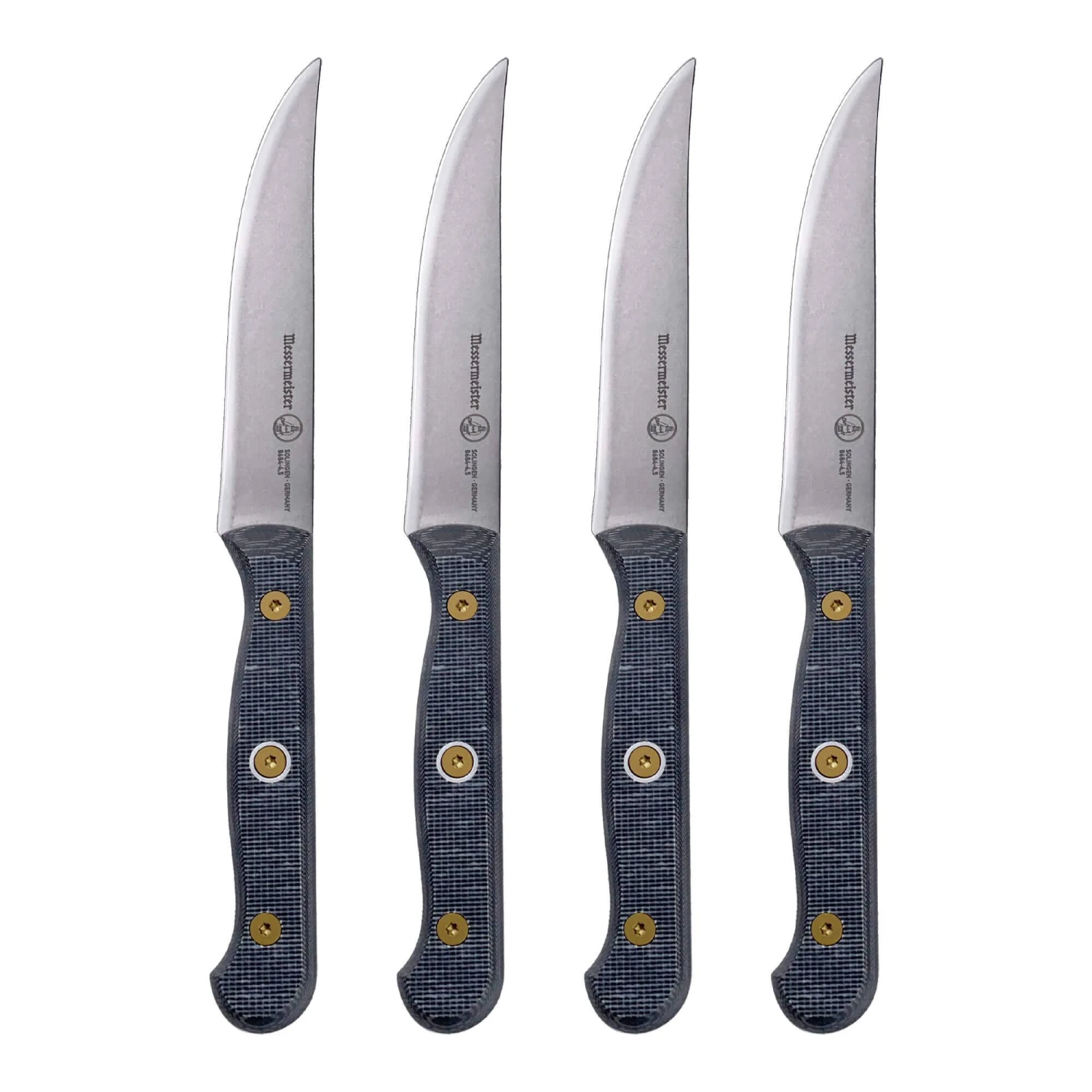 The Messermeister Custom 5” Steak Knife has a fine edge to effortlessly trim and cut meat without tearing. This slim and compact design is elegantly styled to look great with any place setting.