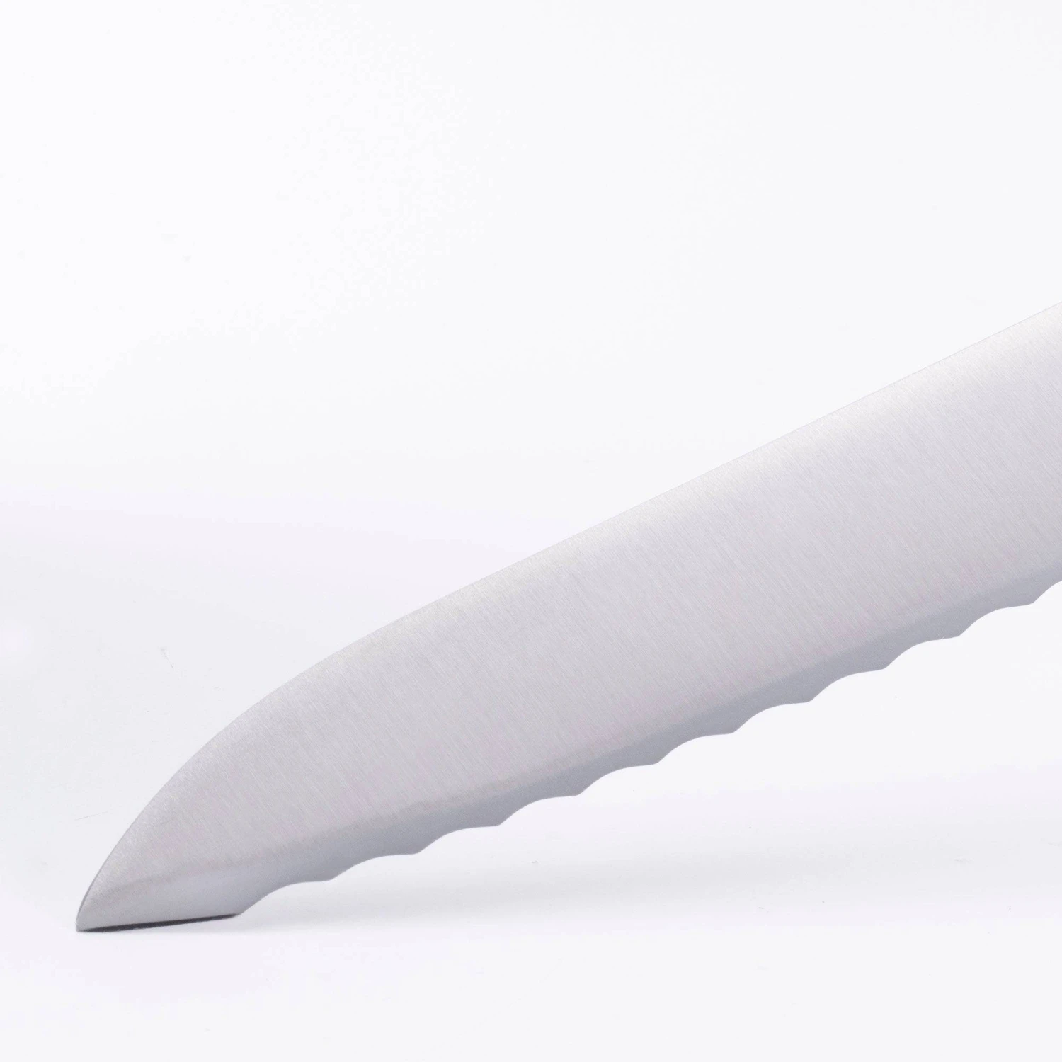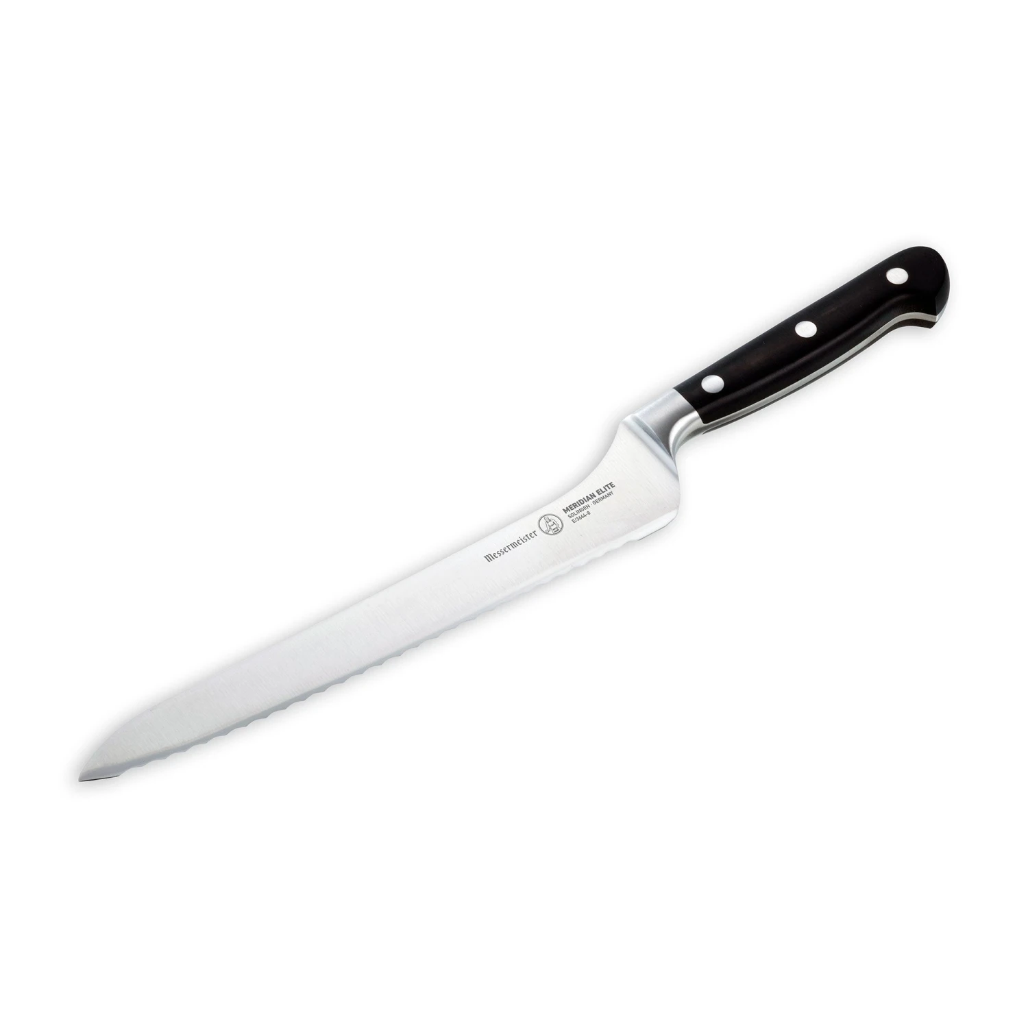 The Messermeister Meridian Elite 8 Inch Scalloped Offset Knife is quite versatile. It is great for slicing bread, sandwiches, and soft skinned produce. The offset feature of this knife provides maximum grip clearance between hand and cutting surface.
