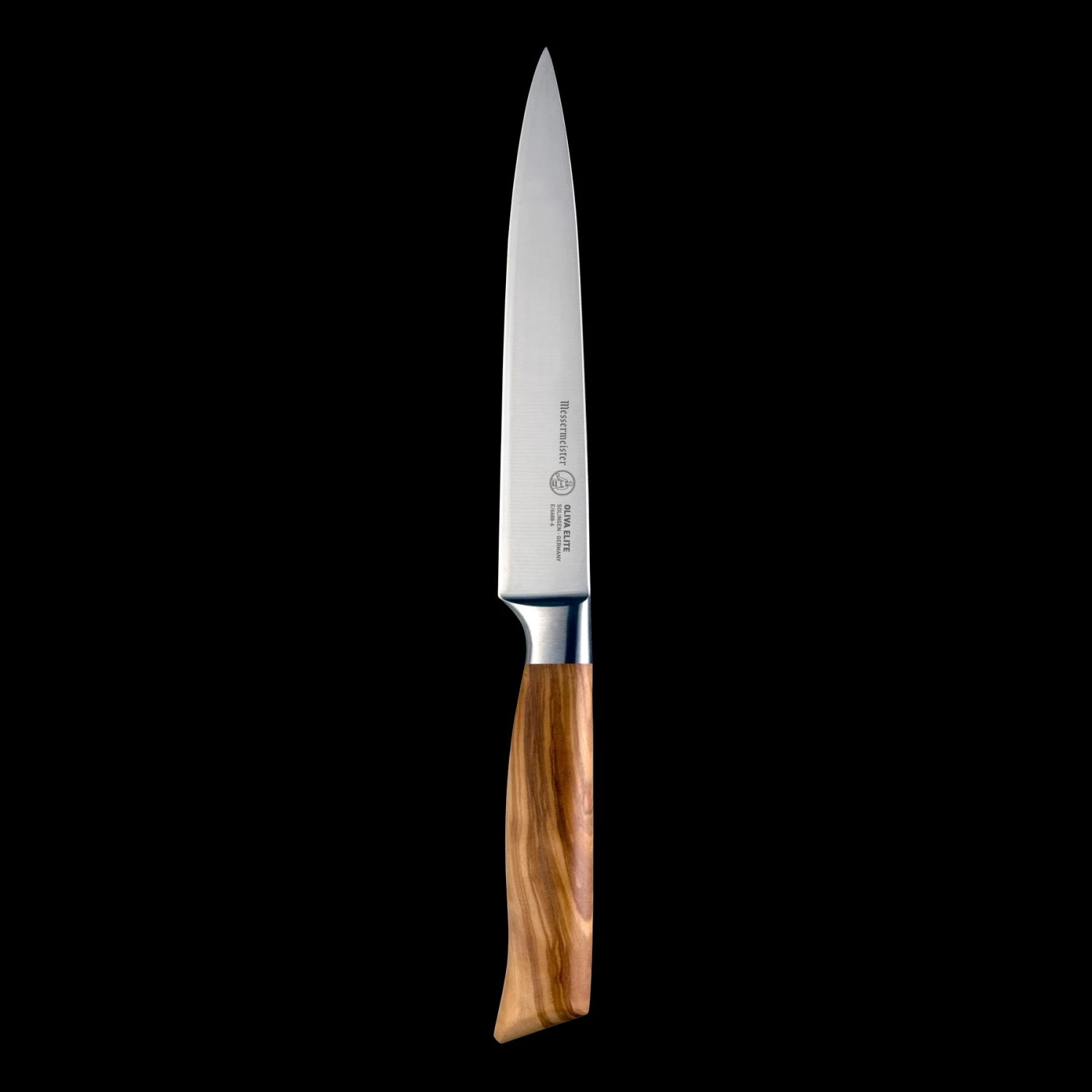 You will find yourself using the Messermeister Oliva Elite 6” Utility Knife for all of your go-to tasks in the kitchen. With its fine edge, this traditional style utility knife is one of the most frequently used knives in the kitchen and a favorite for prepping, peeling and slicing.