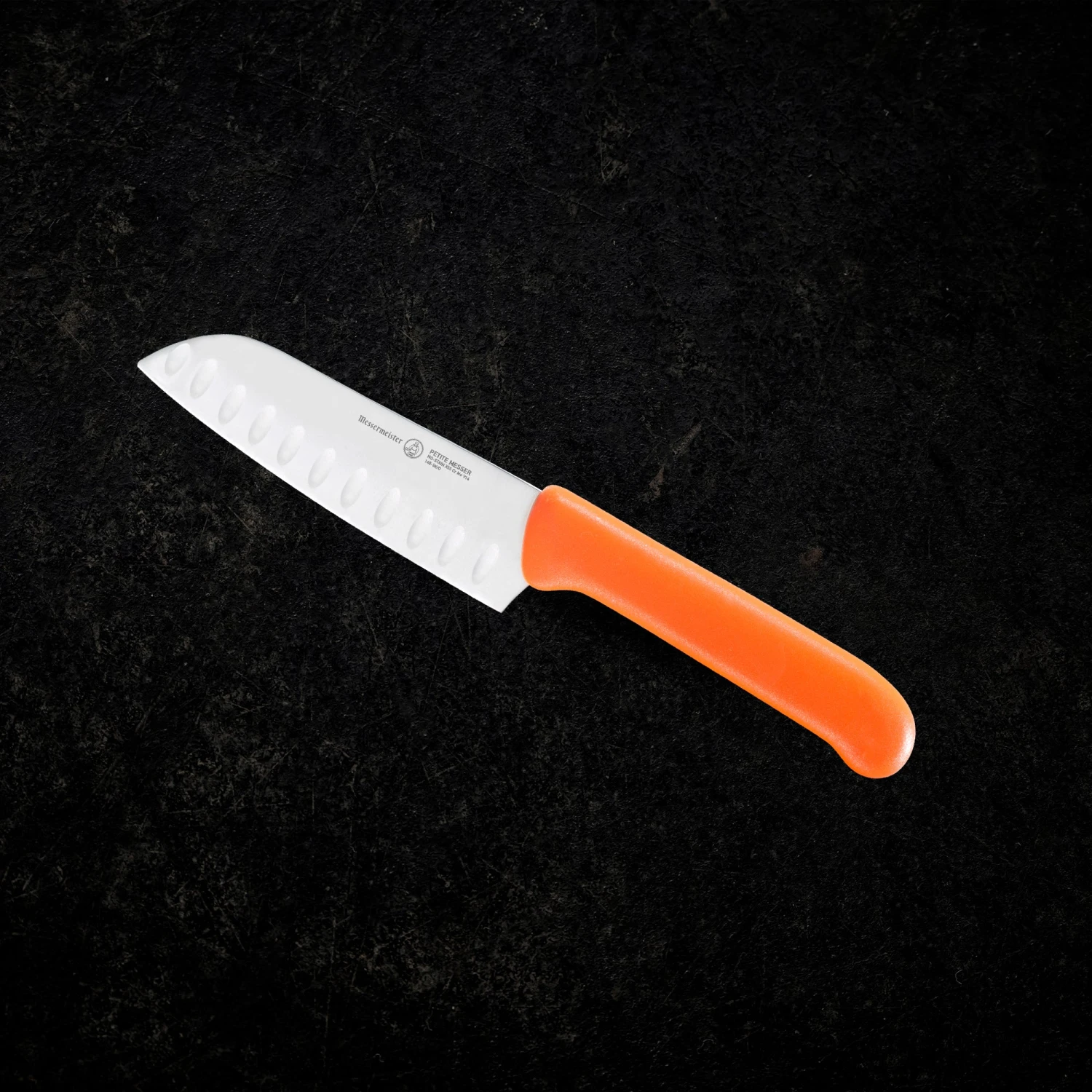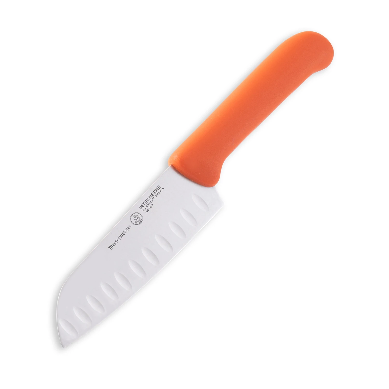 Just as versatile as a traditional chef’s knife, the Santoku Knife is also known as a Japanese chef’s knife. The Petite Messer 5” Kullenschliff Santoku, has a thin taper for maximum precision when slicing vegetables, fish and meat. The kullens are the semi-circular hollows on either side of the blade which reduce adhesion and ease the cutting and separation of meats, cheese and vegetables.