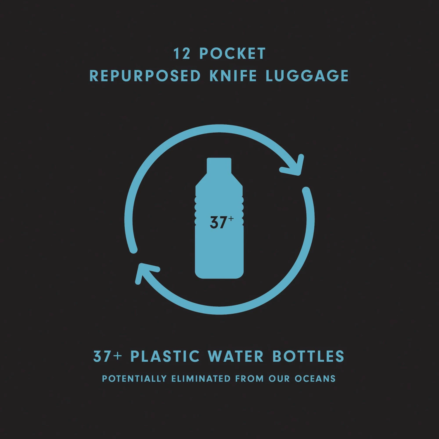 - 37 recycled water bottles were used to create a 12 Pocket Knife Roll
