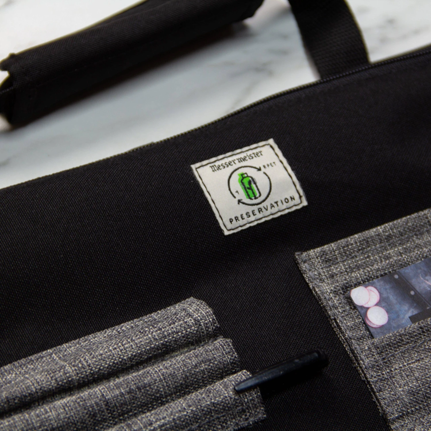 Our Messermeister Preservation Collection is the first knife luggage with woven fabric made from 100% recycled water bottles. The new material has a luxurious soft feel and is heavier weight than our best selling polyester bags. The new Preservation Collection comes in Black and Heather Gray.