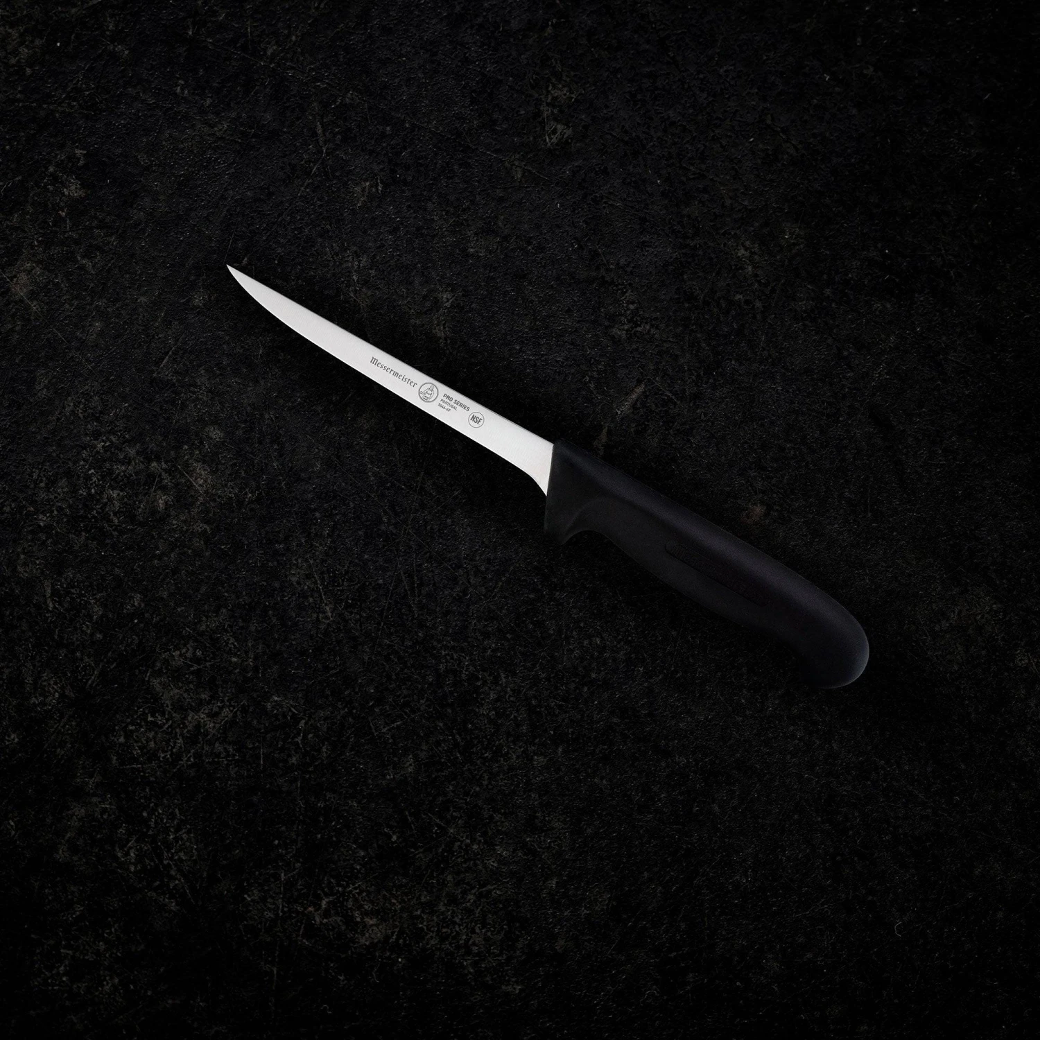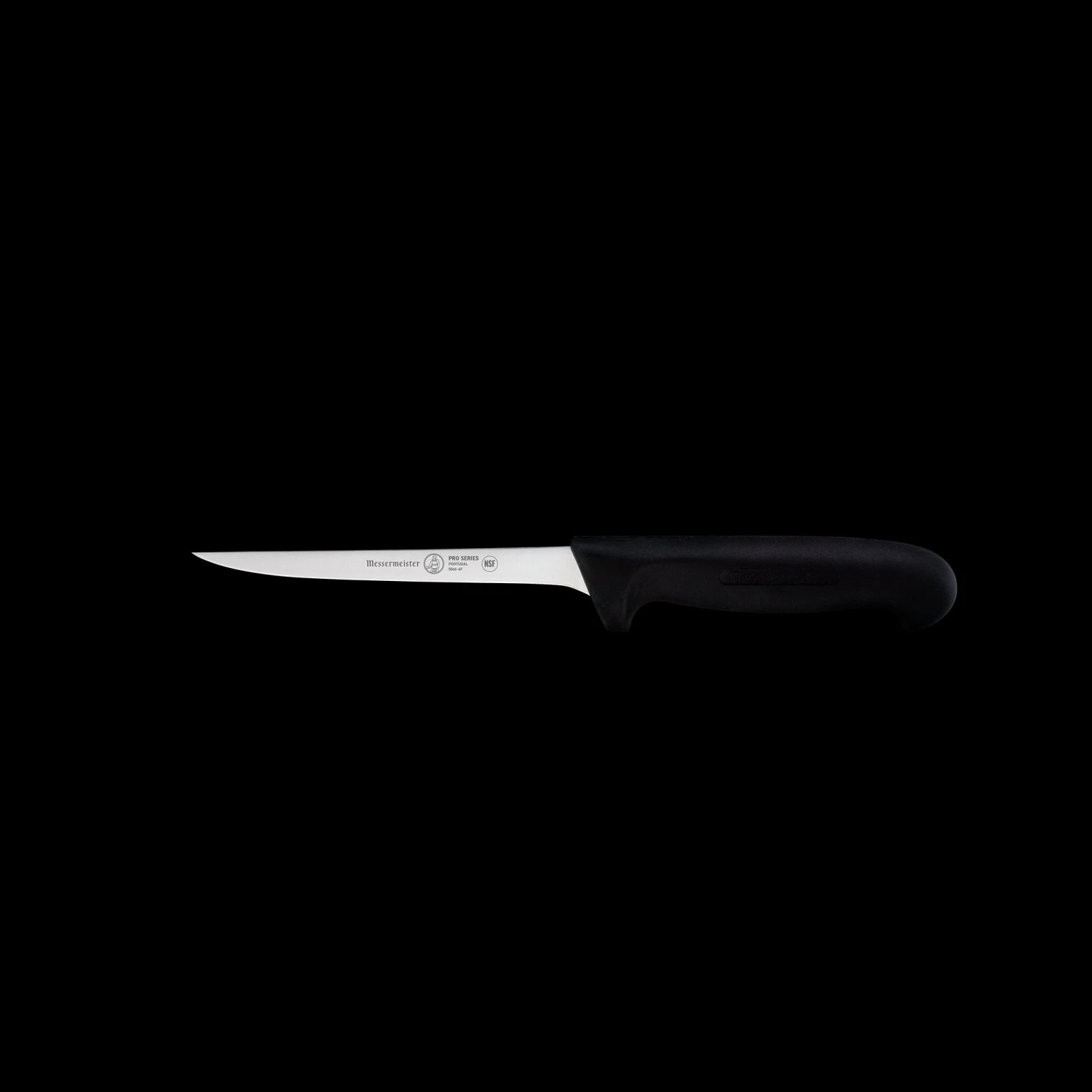 The Messermeister Pro Series 6″ Flexible Fillet Knife has a stamped, flexible and narrow blade. Flexible fillet knives have blades that are extremely flexible allowing the blade to conform to the shape of the item that you are skinning, filleting or boning. Preferred by culinary professionals, this commercial quality knife is used to separate meat from the bone.