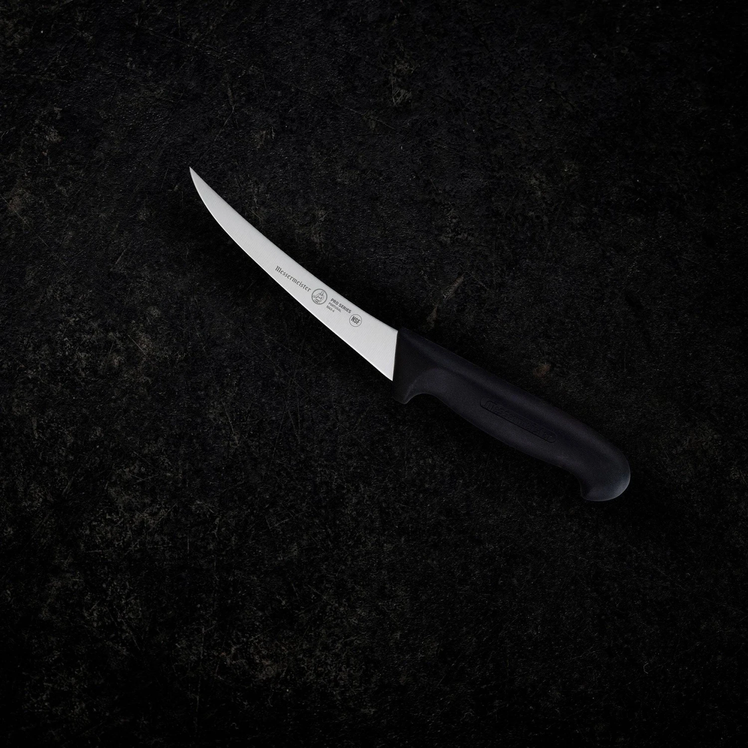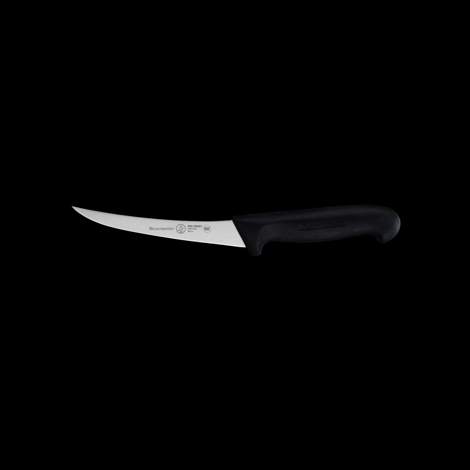 The Messermeister Pro Series 6″ Semi-Flexible Curved Boning Knife has a stamped, semi-flexible & narrow blade with an upward curve. Preferred by culinary professionals, this commercial quality knife is used to trim cuts of meat, separate meat or fish from the bone or separate flesh from the curved skin of a melon.
