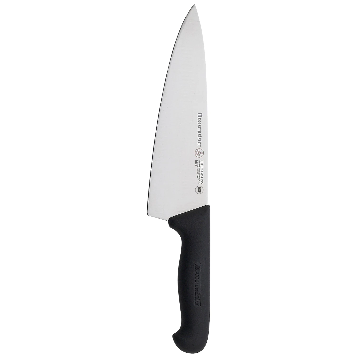 The Messermeister Pro Series 8″ Chef’s Knife is the workhorse in every kitchen. You’ll gravitate towards this knife and find yourself using it for 90% of all your cutting tasks. It has a commercial grade oversized, molded hygienic handle. The stamped blade has been ground down to a thin profile to create a razor sharp edge. You can chop, slice, dice and mince your way through extended cutting tasks without fatigue.