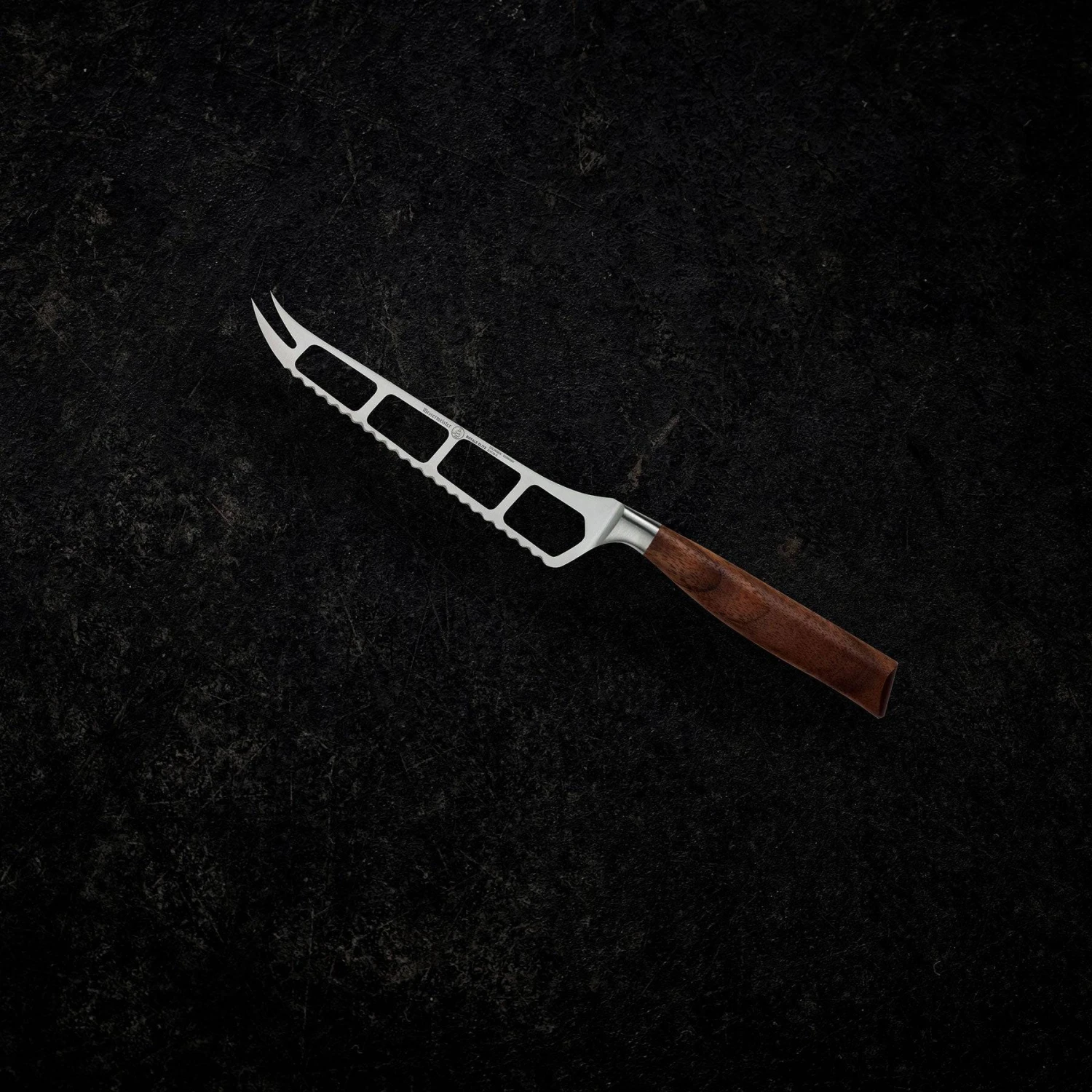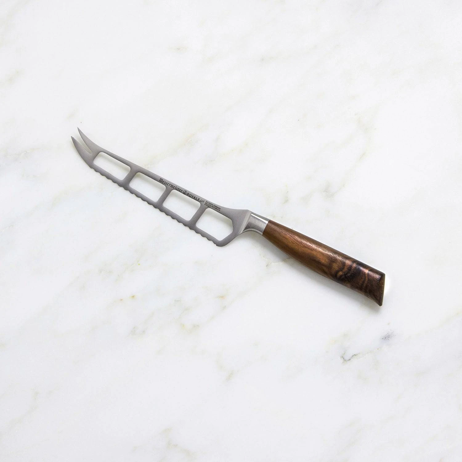 The Messermeister Royale Elite 5″ Cheese and Tomato Knife is the perfect addition to any cheese plate. This knife is hand-crafted from the finest German stainless steel. The serrated wavy edge is suitable for cutting soft, medium or hard cheeses, tomatoes, and any soft skinned fruit or vegetable. The fork tip is designed to move pieces from the cutting board to a plate.